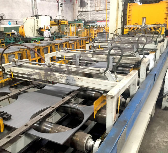 汽車鋼圈落料生產(chǎn)線是我公司針對(duì)汽車鋼圈行業(yè)定制開(kāi)發(fā)的落料專用生產(chǎn)線,主要應(yīng)用于汽車鋼圈行業(yè)的落料工藝,生產(chǎn)線包含落料專用液壓機(jī)、全自動(dòng)滾輪送料裝置、步進(jìn)式伺服送料機(jī)械手等高度機(jī)械化的裝置,可以完成送料、對(duì)中、位置檢測(cè)、落料、成品鋼圈輸送、廢料回收等工序,非常人性化,同時(shí)也大幅提高了生產(chǎn)效率。